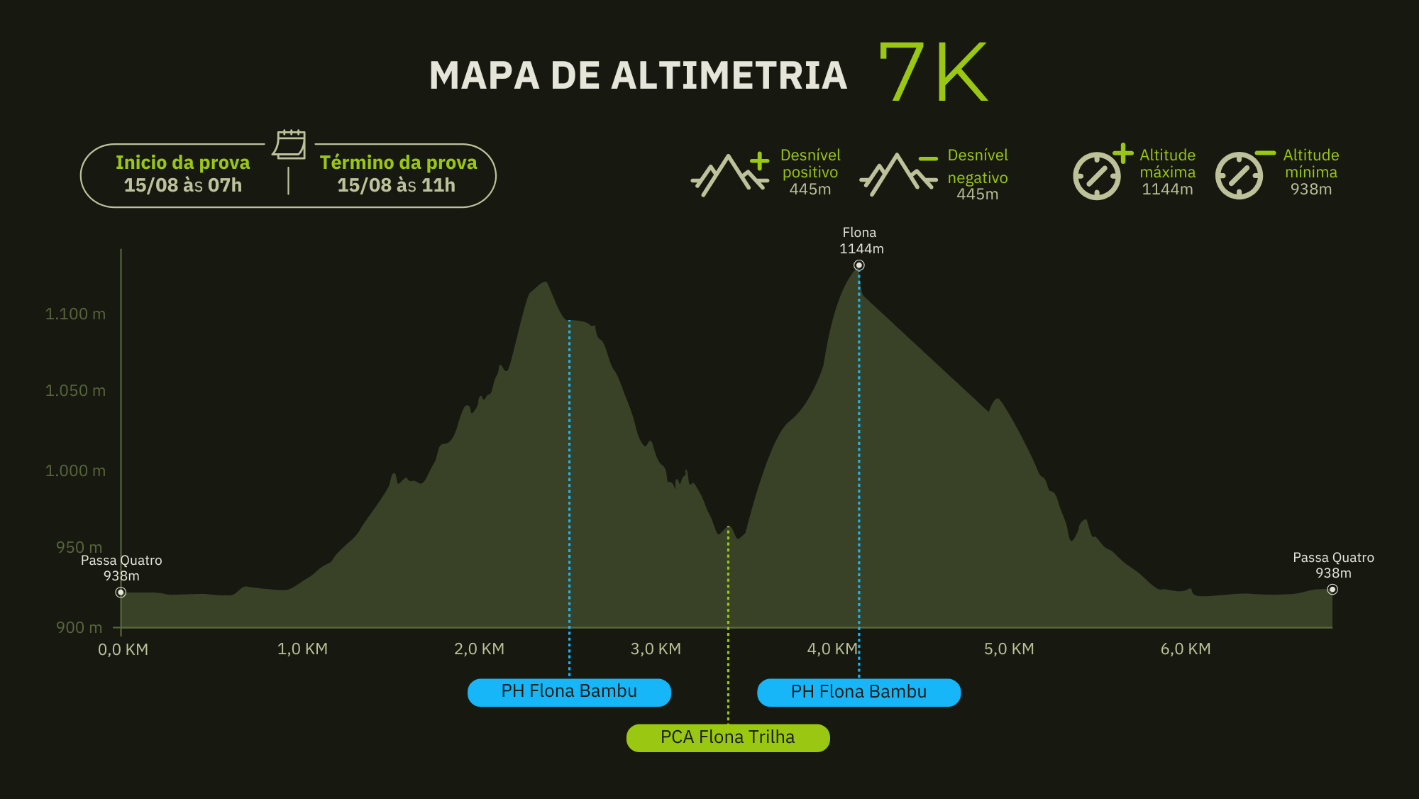 O desafio é completar os 07km dentro do tempo limite de 4 horas e seguir as demais regras do evento.